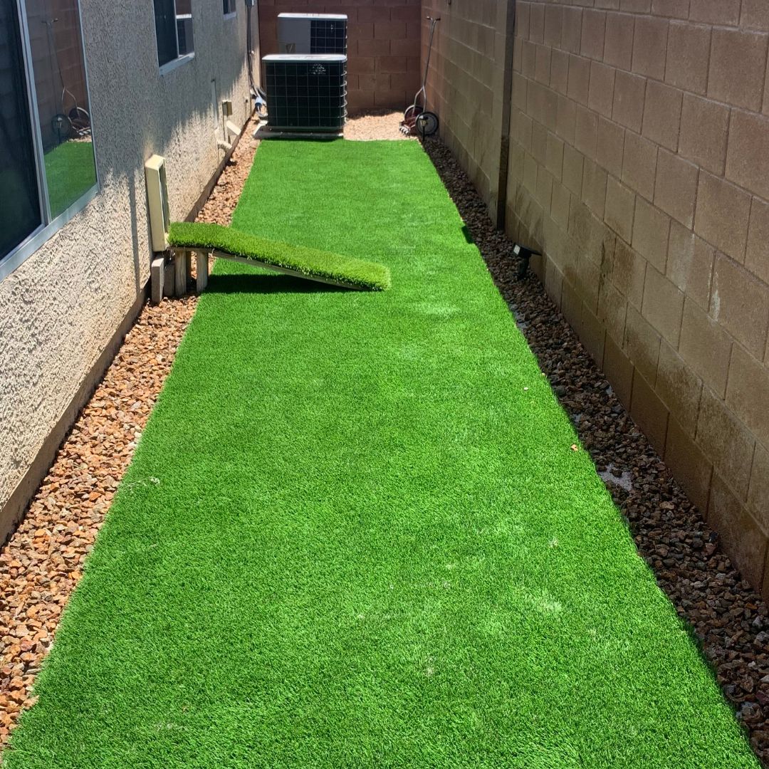 Artificial turf is non-toxic and safe for dogs to play and relieve themselves on.