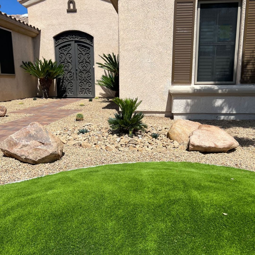 Artificial grass perfectly complements rock features, providing a lush and natural-looking background for the rocks to stand out. The combination of rock and artificial grass can create beautiful and low-maintenance landscaping. The rocks can create borders, paths, or even water features. Contact us today to learn more about our rock installation services and how we can help you create beautiful and unique landscaping for your property.